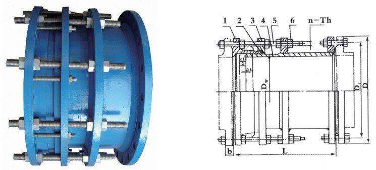 VSSJAFC(CC2F)型可拆式雙法蘭傳力接頭簡單介紹: VSSFAF(CC2F)型可拆式雙法蘭傳力接頭:安裝在管道上后,根據(jù)所需的伸縮的伸縮距離進行限位,擰緊螺母,彈性密封圈在螺母壓蓋的作用下依靠相互斜度,緊壓在管子外圈起密封和連接作用,主要和管道閥門連接不但起到管道補償作用,更方便了閥門的維修及更換。